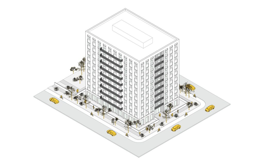 6-12 storey mid-rise housing, student accommodation and hotels.
